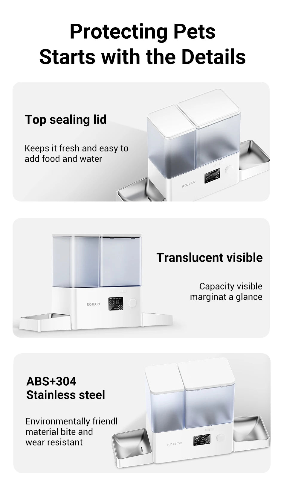 ROJECO 2L Automatic Pet Feeder Smart Cat Food Kibble Dispenser Wi-Fi App Remote Control Auto Dog Feeder For Cat Pet Accessories